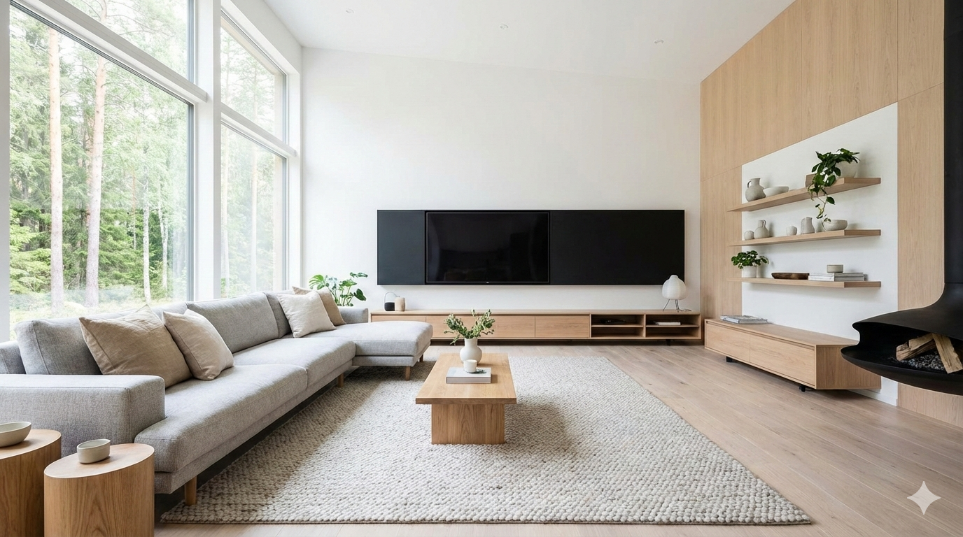 Salon w stylu skandynawskim to miejsce, gdzie prostota łączy się z przytulnością.