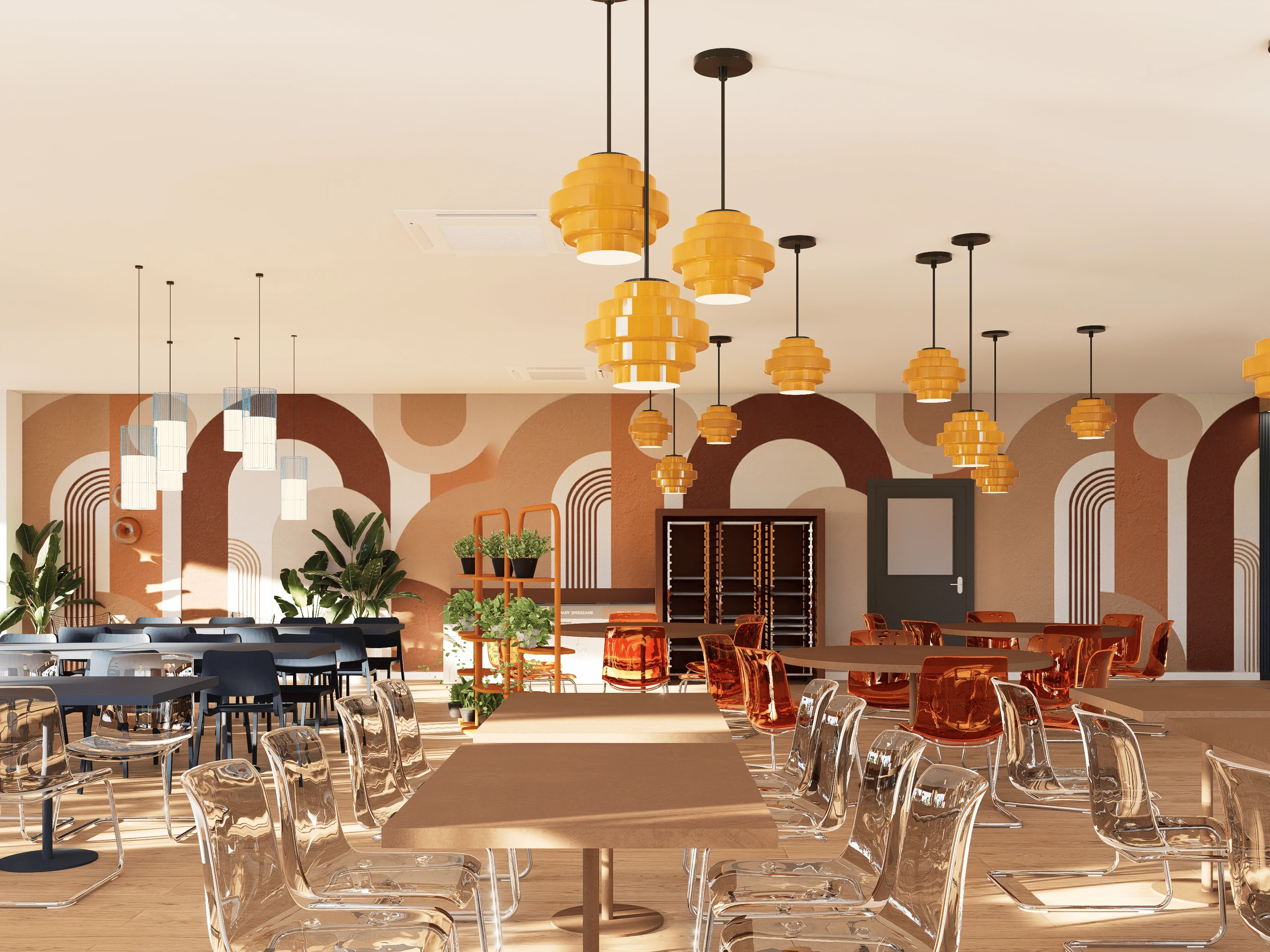 Prezentujemy projekt wnętrz kantyny pracowniczej dla firmy IKEA, zlokalizowanej w okolicach Poznania. Głównym wyzwaniem było stworzenie przestrzeni, która będzie nie tylko funkcjonalną stołówką, ale przede wszystkim miejscem spotkań, relaksu i integracji dla pracowników. Postawiliśmy na energetyczny, eklektyczny styl, który łączy w sobie estetykę modern retro z duchem skandynawskiego designu.